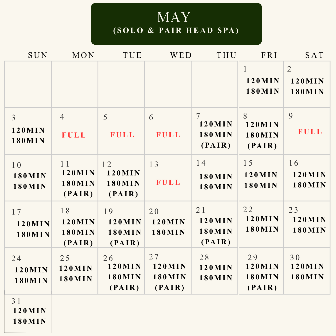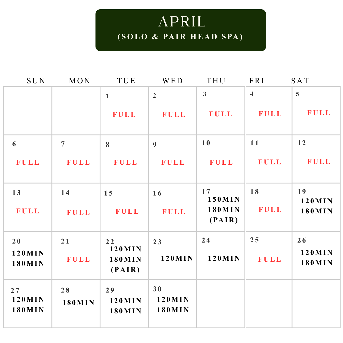 Book for April & May✨Pairair and solo head spa
