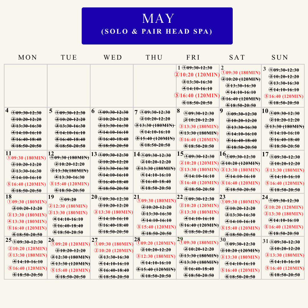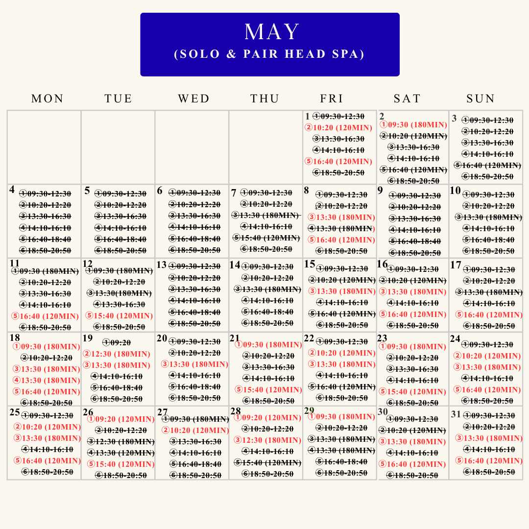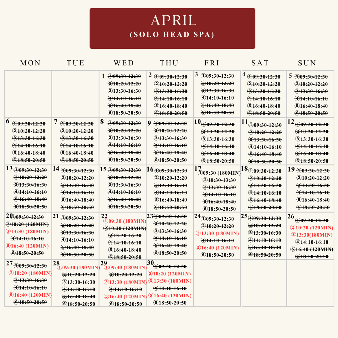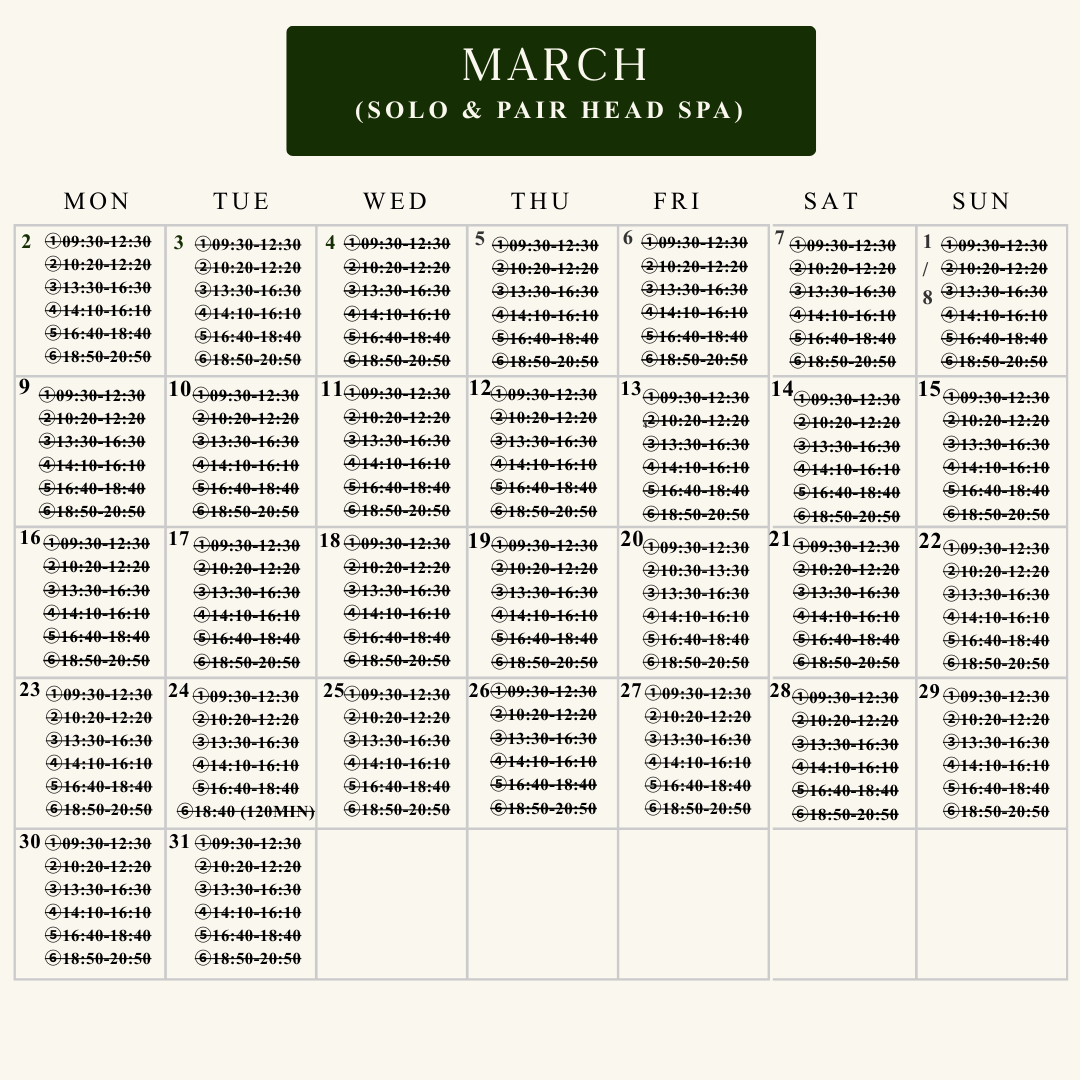 Book available last slots for April and May✨Choose the menu and Join the waitlist for June ~ December 2026! Pair and solo head spa