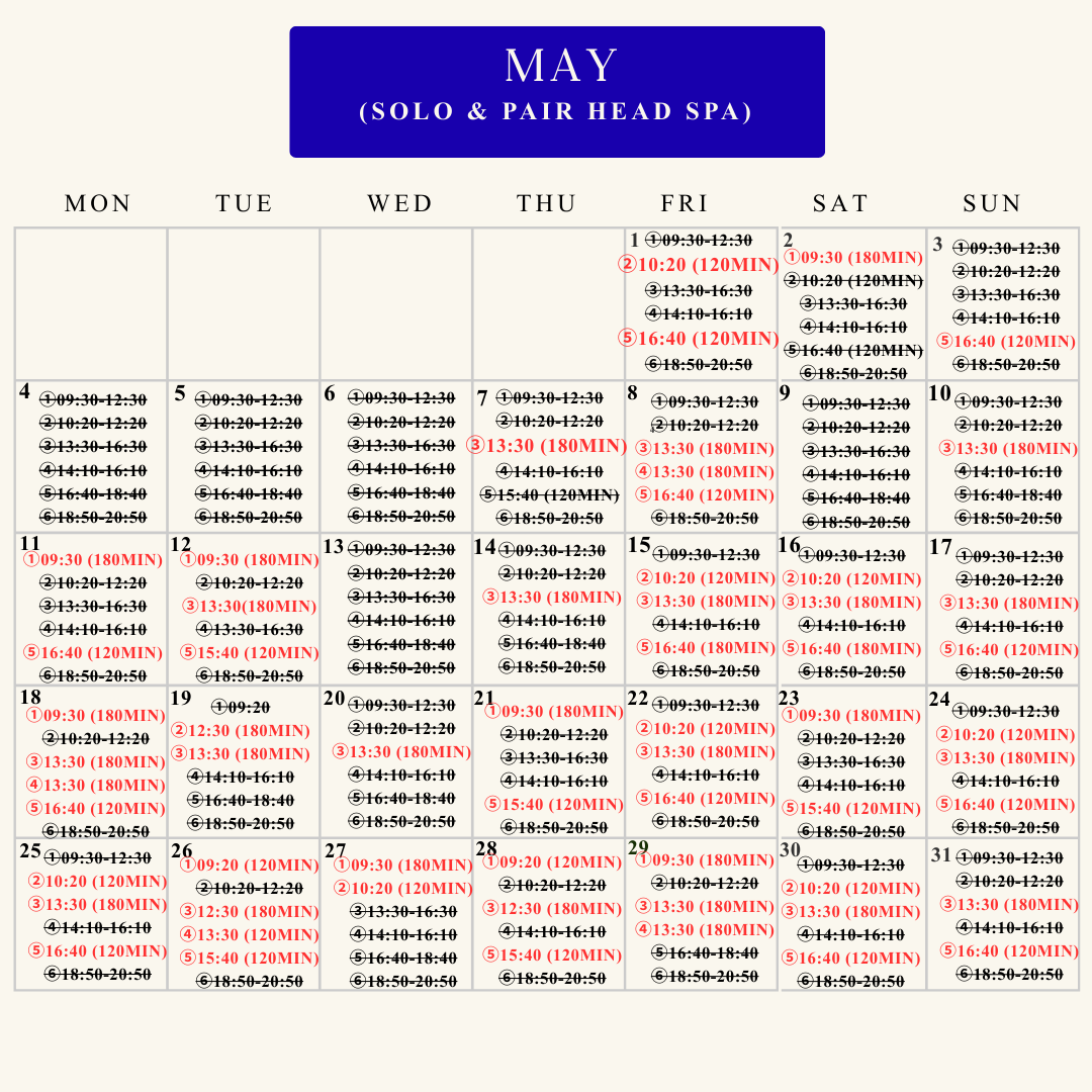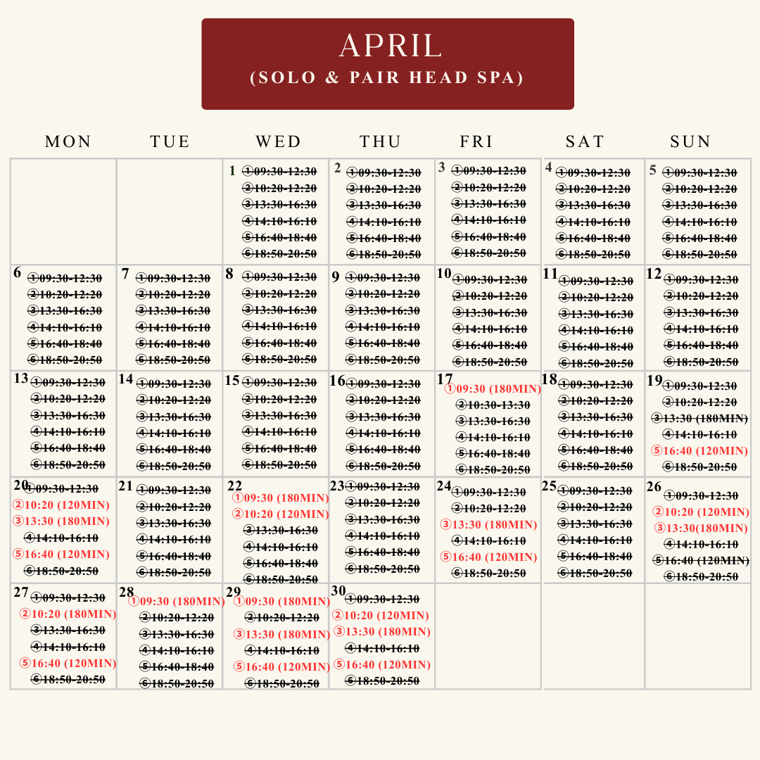 Book available last slots for April and May✨Choose the manu and Join the waitlist for June ~ December 2026! Pair and solo head spa