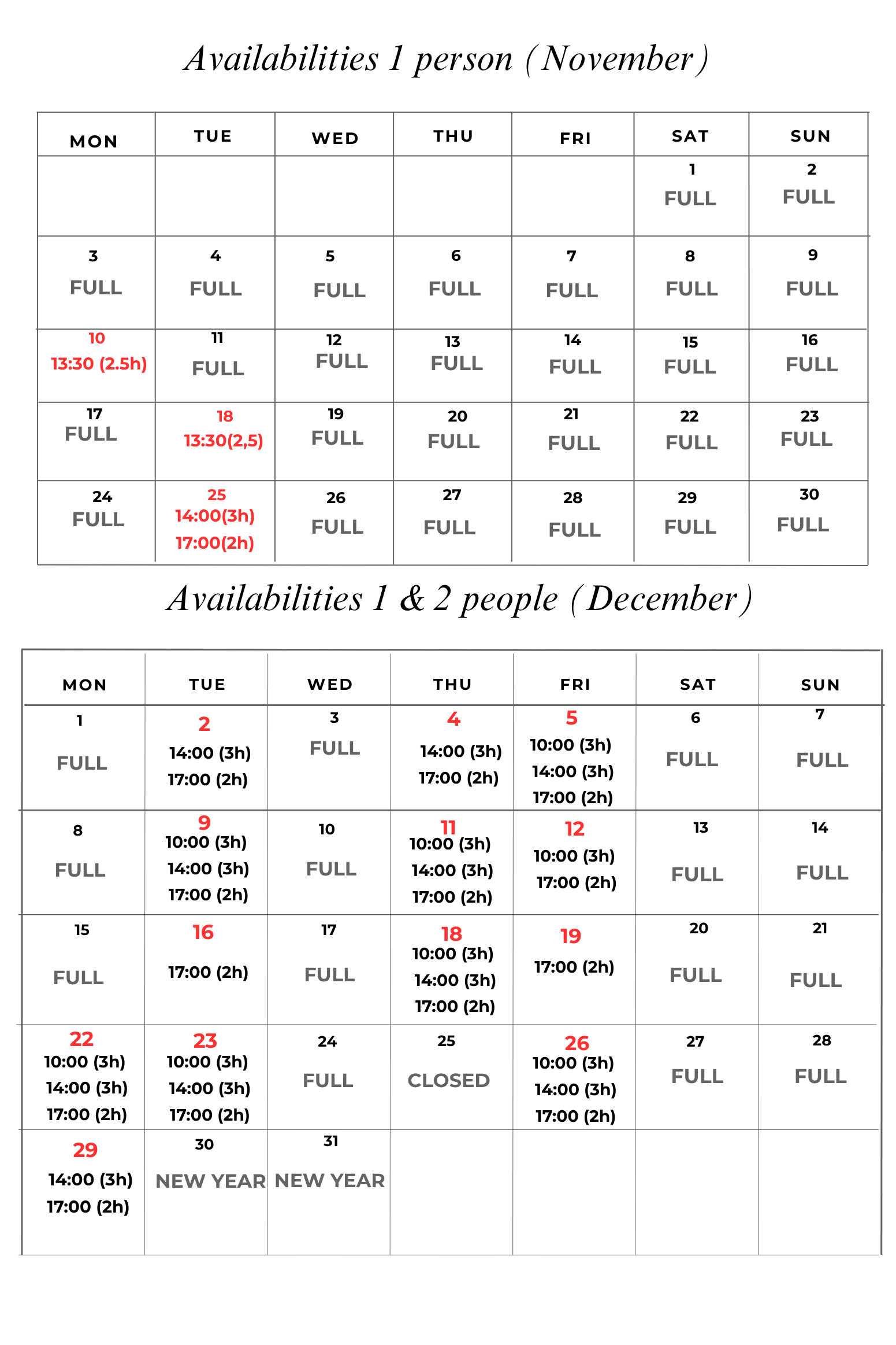 December is open to book for solo customers. Our Second spa in Shinjuku has solo and duo slots!